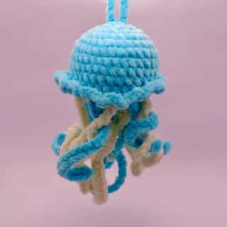 Add a touch of ocean magic to your space with this hand-crocheted blue and white jellyfish. Crafted with care, each jellyfish features delicate, flowing tentacles and a soft, textured body, all made from high-quality yarns. Perfect for beach-themed decor, nurseries, or anyone who loves the sea, this whimsical piece will bring a peaceful, underwater vibe to your home. Suspended from a sturdy loop, it's designed to gently sway with the air, mimicking the graceful movement of a jellyfish in the water. Bring the beauty of the ocean indoors with this unique and charming decor item.